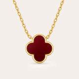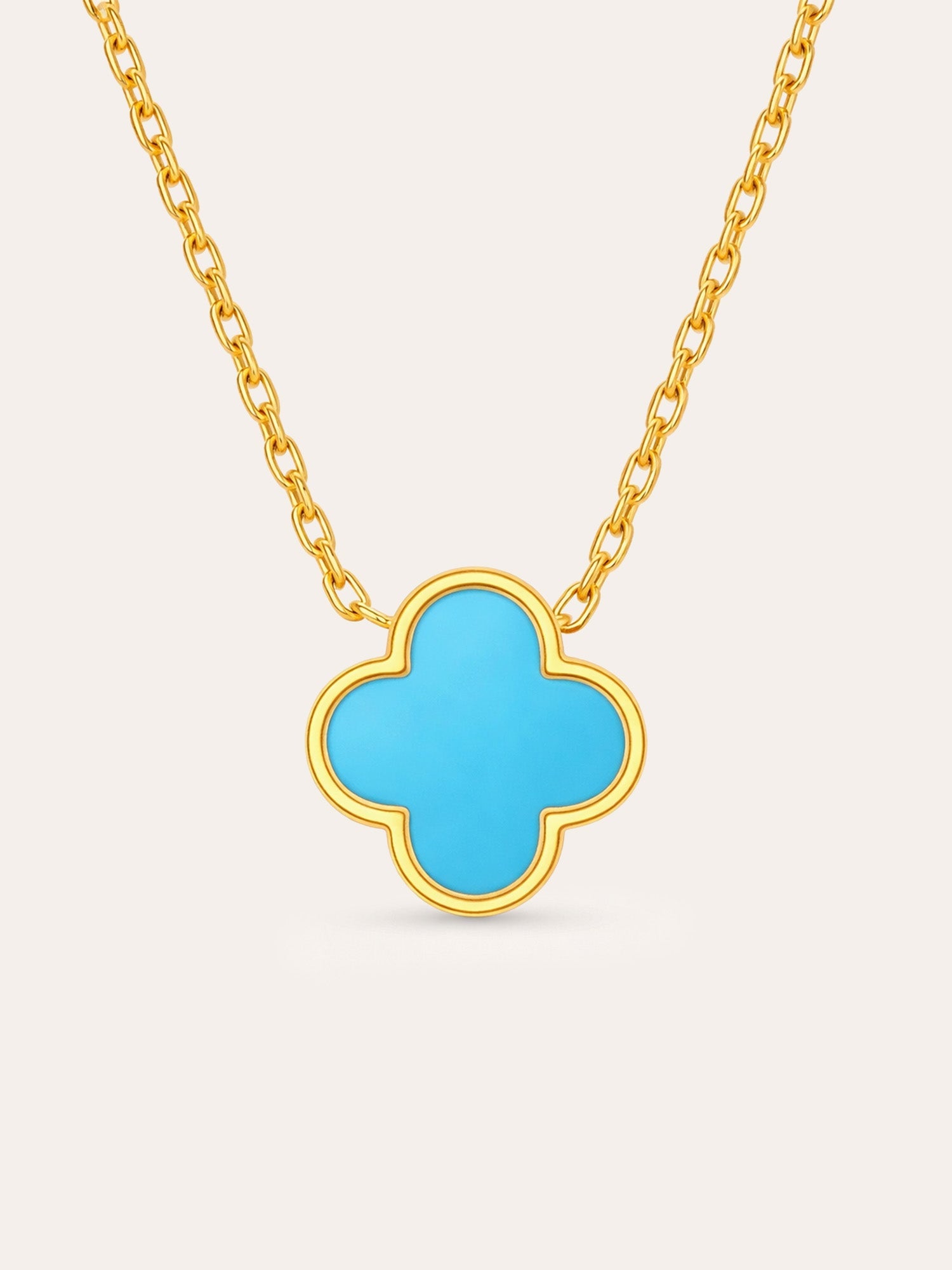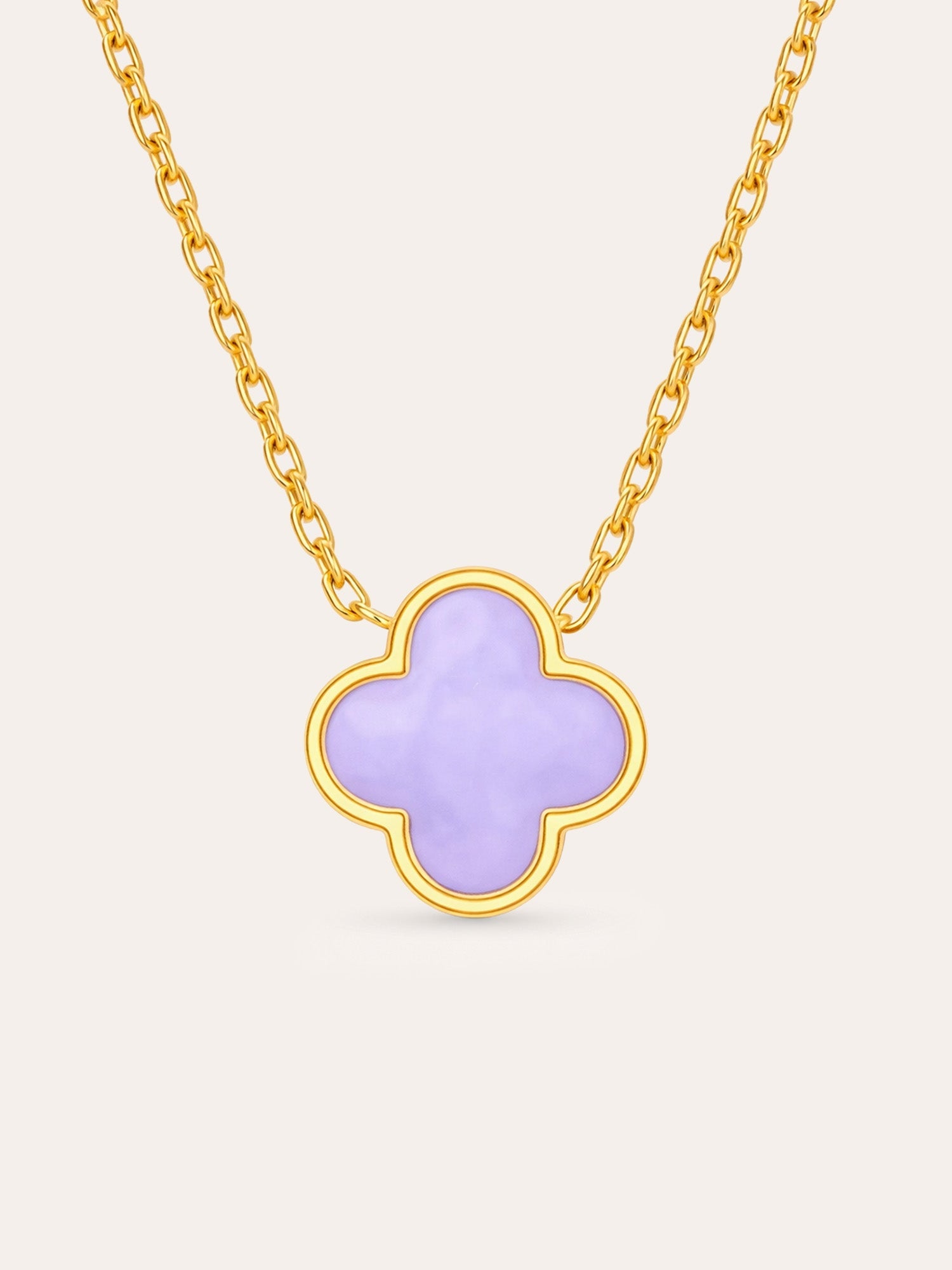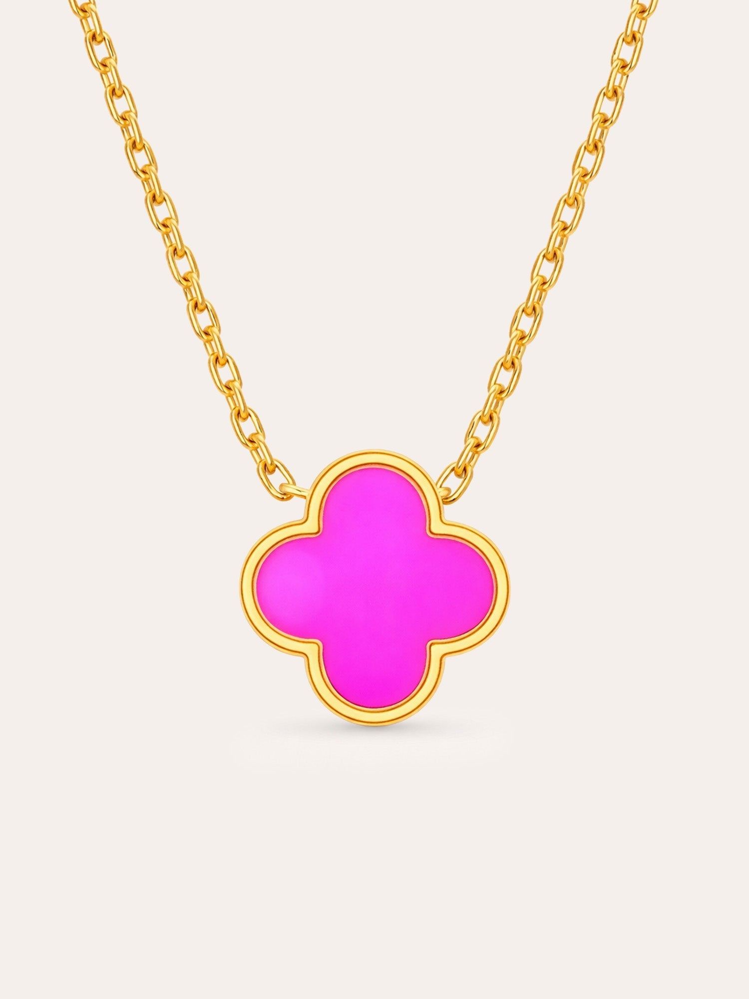 Our Clover Charm necklace combines elegant design with a touch of symbolism. The delicate clover pendant represents hope, love, happiness and confidence; set in shiny gold and enhanced with smooth, colourful inlays that shimmer like precious stones.