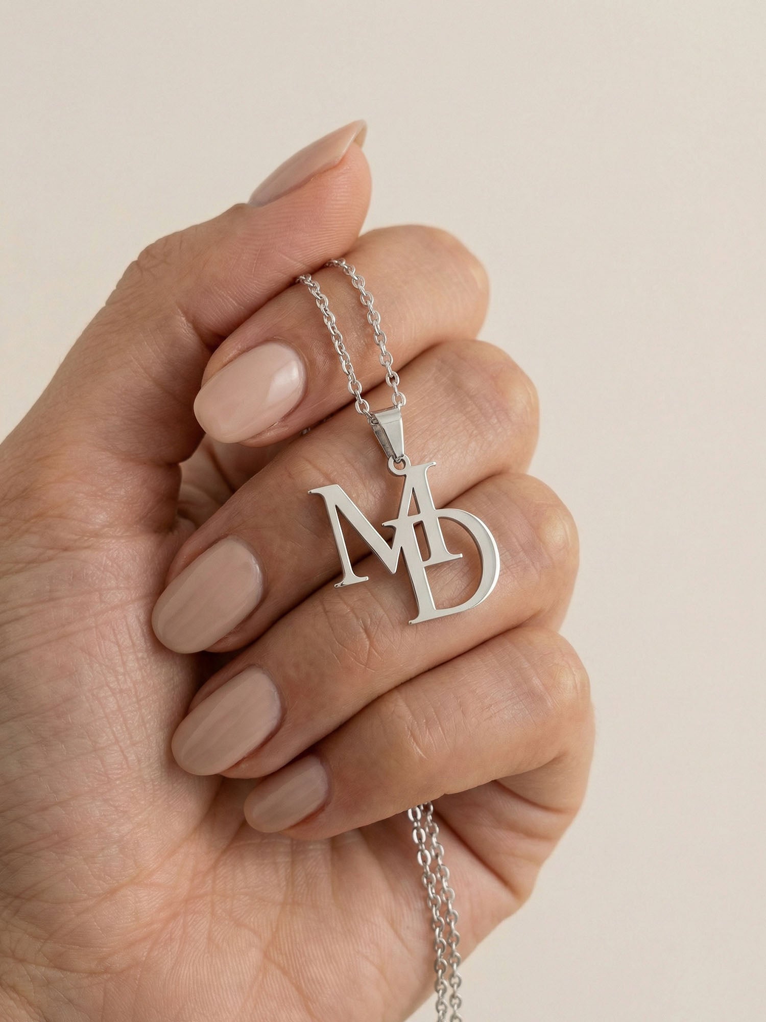 The Lyria necklace combines two initials in a single flowing pendant. A serene and modern interpretation of intimacy: personal, refined and designed to be worn every day.